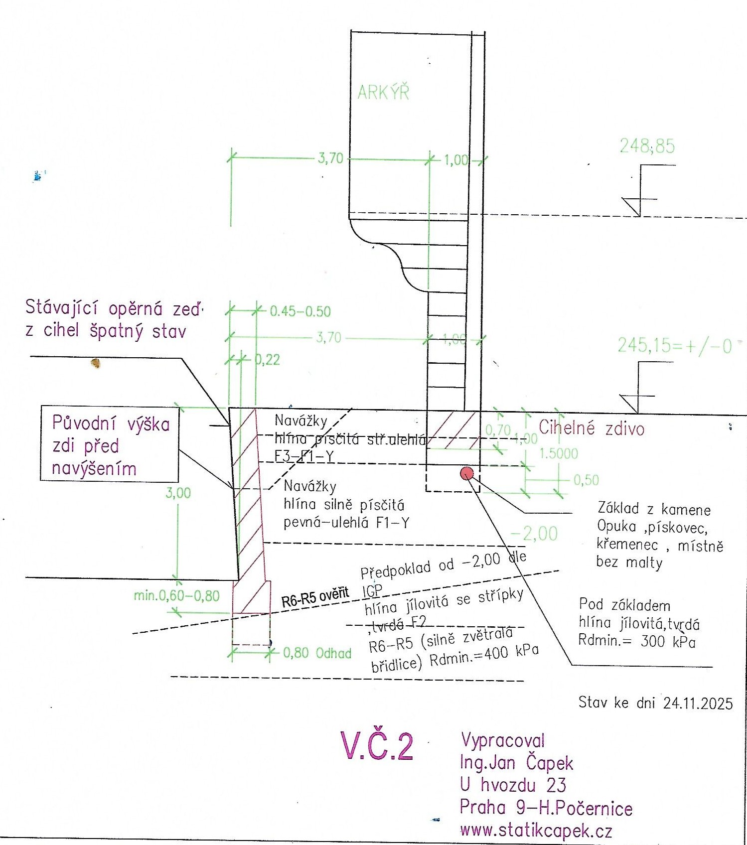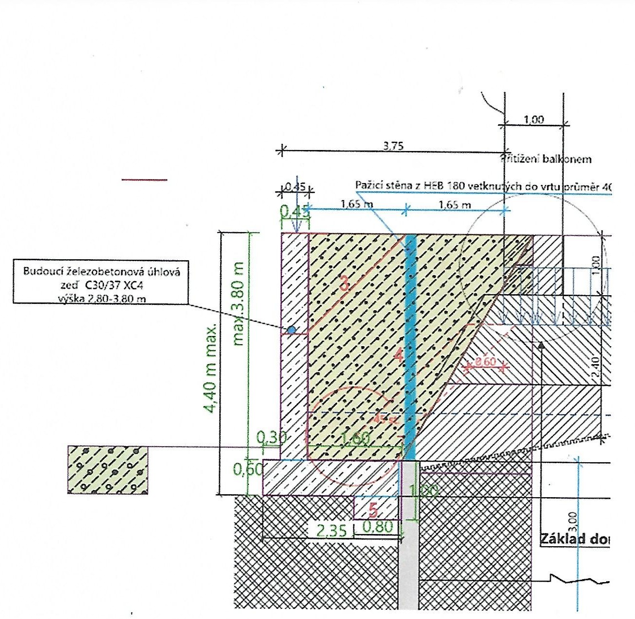 Bohužel provádění stavby zdi bylo bez projektu a statického výpočtu!!
